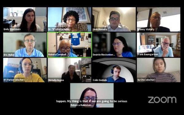 At the Rogers-Eubanks Neighborhood Association Community Center, Minister Robert Campbell prepares bags of canned goods, rice, lentils and fresh produce for the community center’s food pantry every month.
